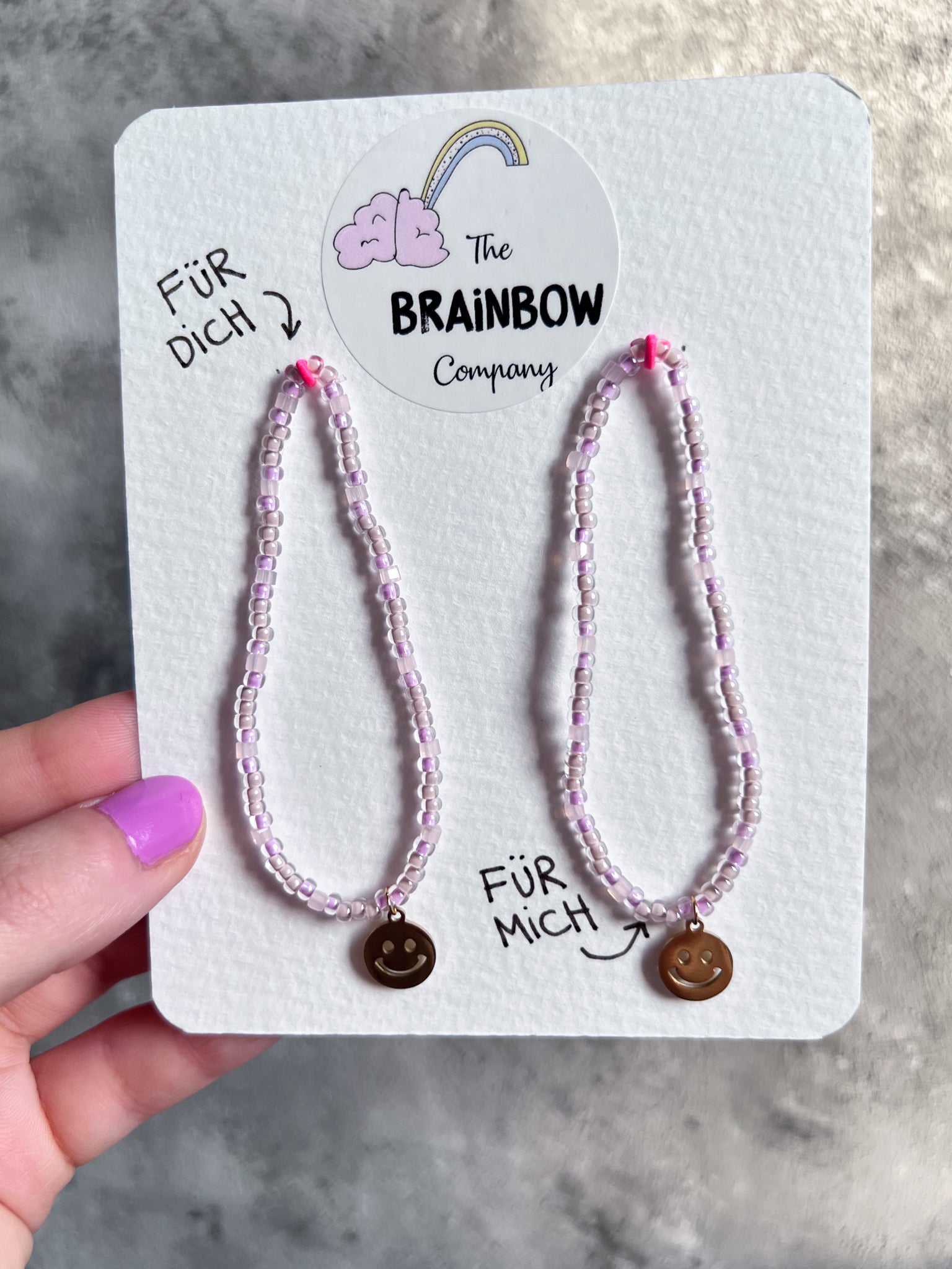 Dieses süße Armbandset für erwachsene Freundinnen wurde von mir mit Liebe hergestellt. Ich verwende ausschließlich hochwertige Perlen, die nicht mit der Zeit verblassen. Der Smileyanhänger ist 18k vergoldet und das Armband ist dehnbar.