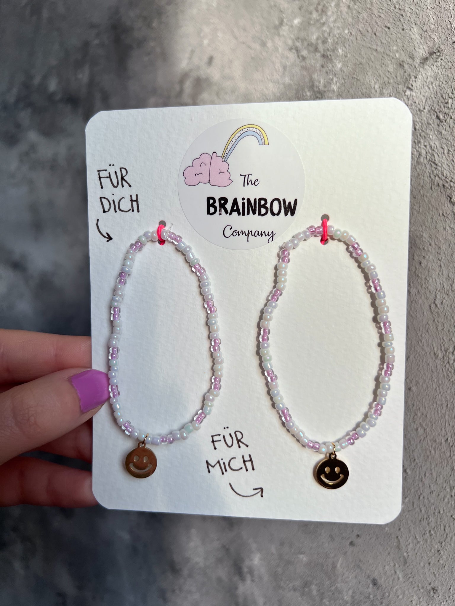 Dieses süße Armbandset für erwachsene Freundinnen wurde von mir mit Liebe hergestellt. Ich verwende ausschließlich hochwertige Perlen, die nicht mit der Zeit verblassen. Der Smileyanhänger ist 18k vergoldet und das Armband ist dehnbar.