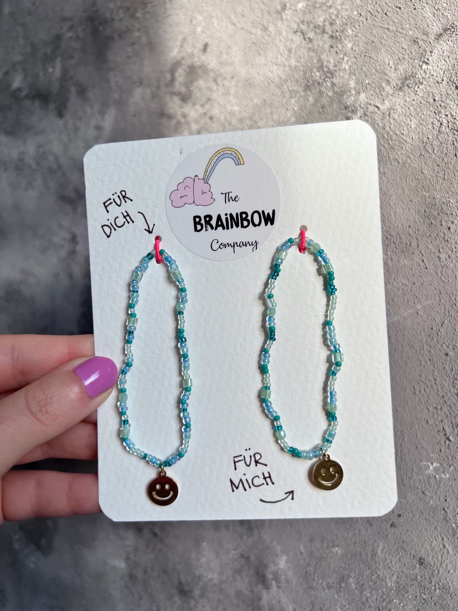Dieses süße Armbandset für erwachsene Freundinnen wurde von mir mit Liebe hergestellt. Ich verwende ausschließlich hochwertige Perlen, die nicht mit der Zeit verblassen. Der Smileyanhänger ist 18k vergoldet und das Armband ist dehnbar.