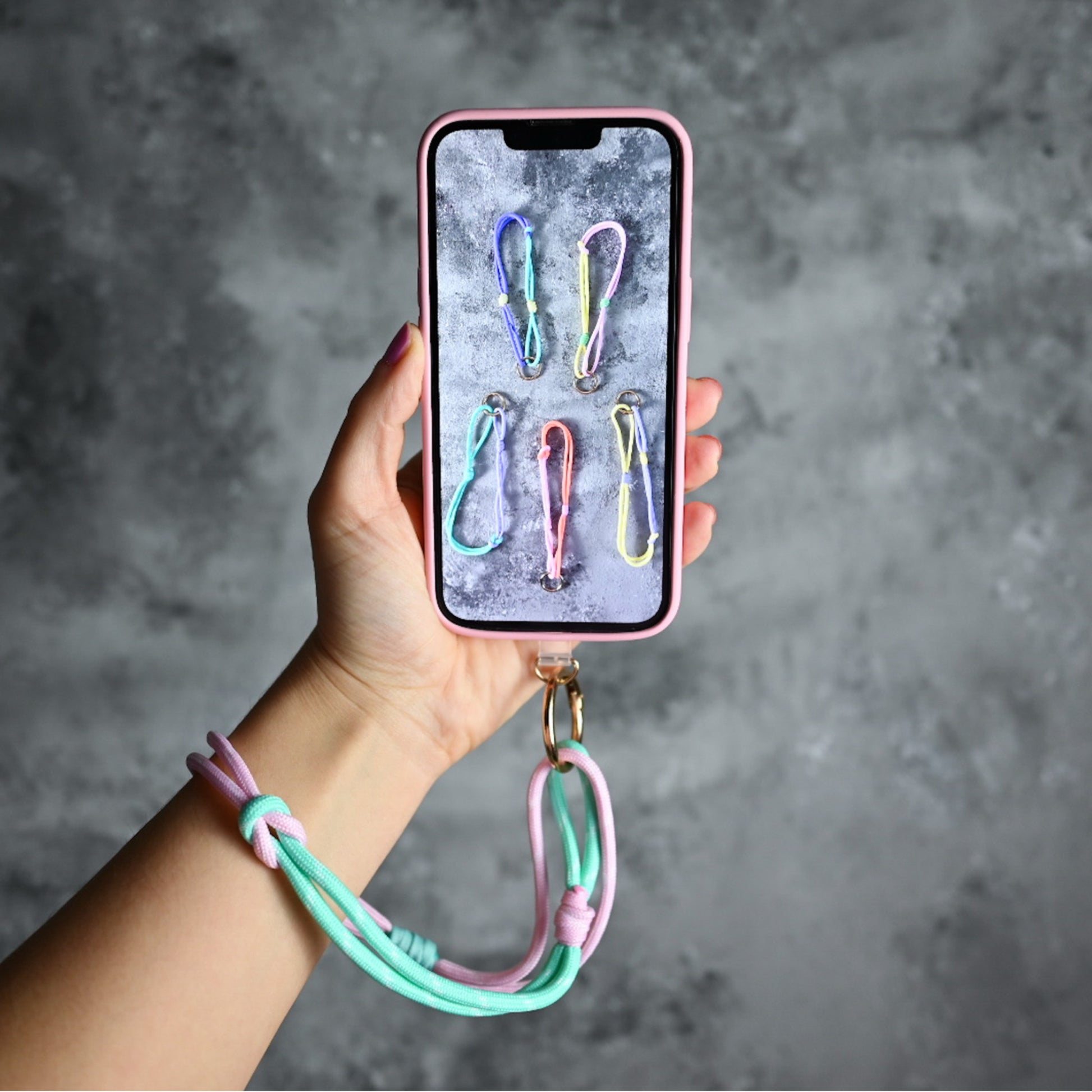 Dank dieser Handykette ist dein Handy safe. Du kannst die stylische Schlaufe einfach um dein Handgelenk wickeln, sollte du mal wieder an einem Abgrund stehen, deinen Arm aus dem Fenster halten oder sonstige waghalsige moves machen, um das perfekte Video/das perfekte Foto zu schießen. Stecke einfach den Plastikadapter hinter deine Handyhülle und clip die Schlaufe mit dem Karabinerhaken in die Öse. Die Schlaufe ist 20cm lang.