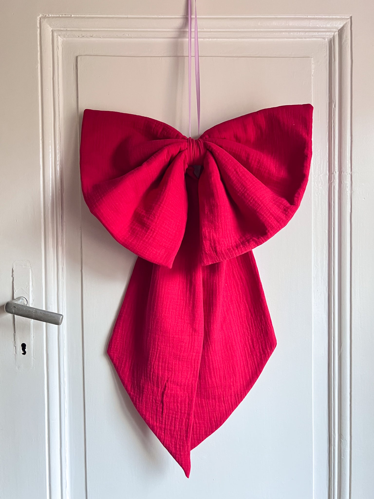 Fühlst du den Vibe? Schleifen sind angesagter denn je und sind inoffiziell fester Bestandteil einer jeden X-Mas Dekoration. Darum habe ich extra große Schleifen genäht.